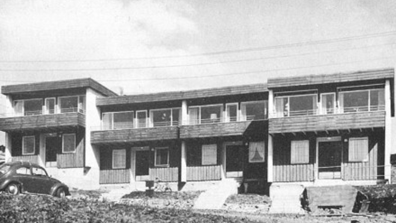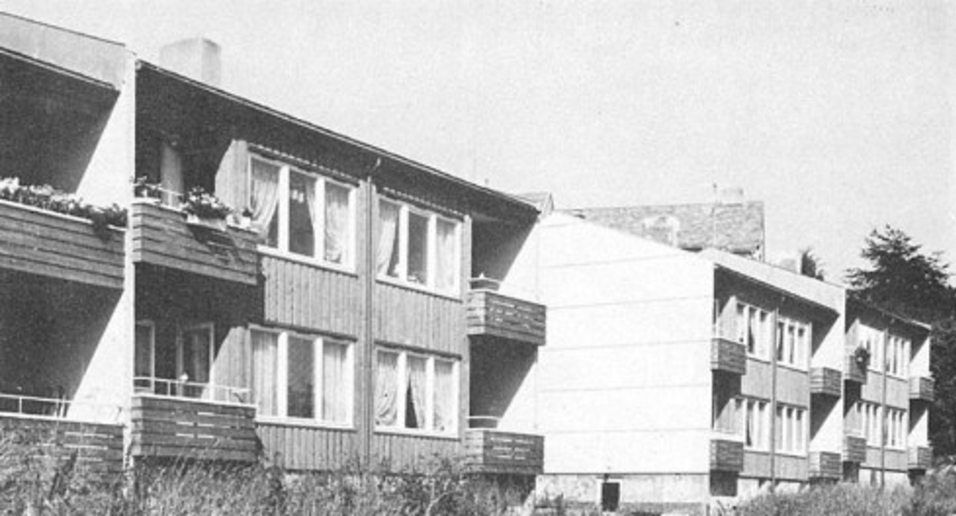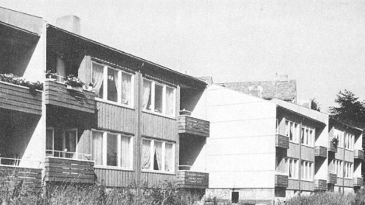 Småhusbebyggelsen i etterkrigsårene var dominert av den korsdelte firemannsboligen og horisontaldelte tomannsboliger.