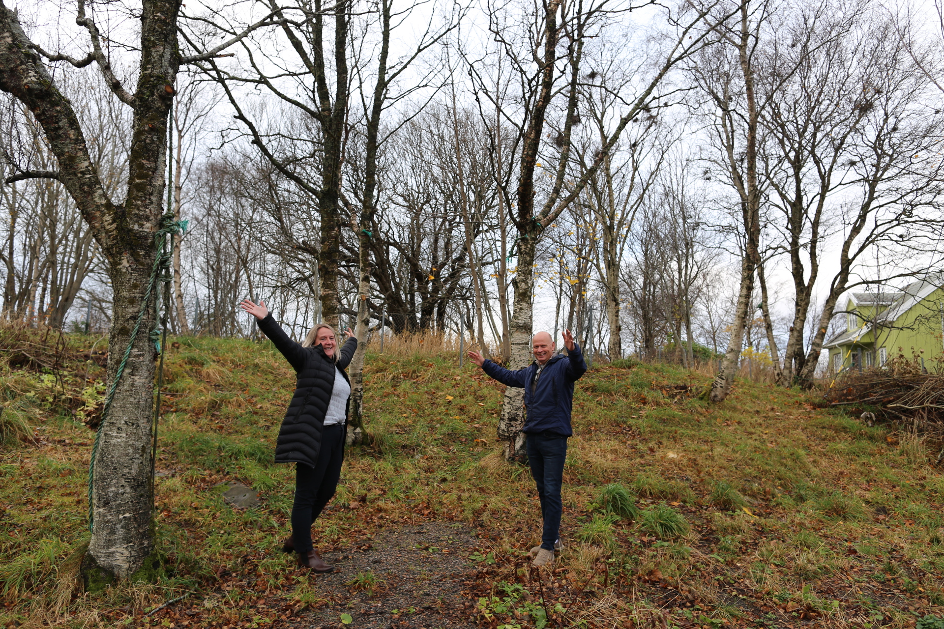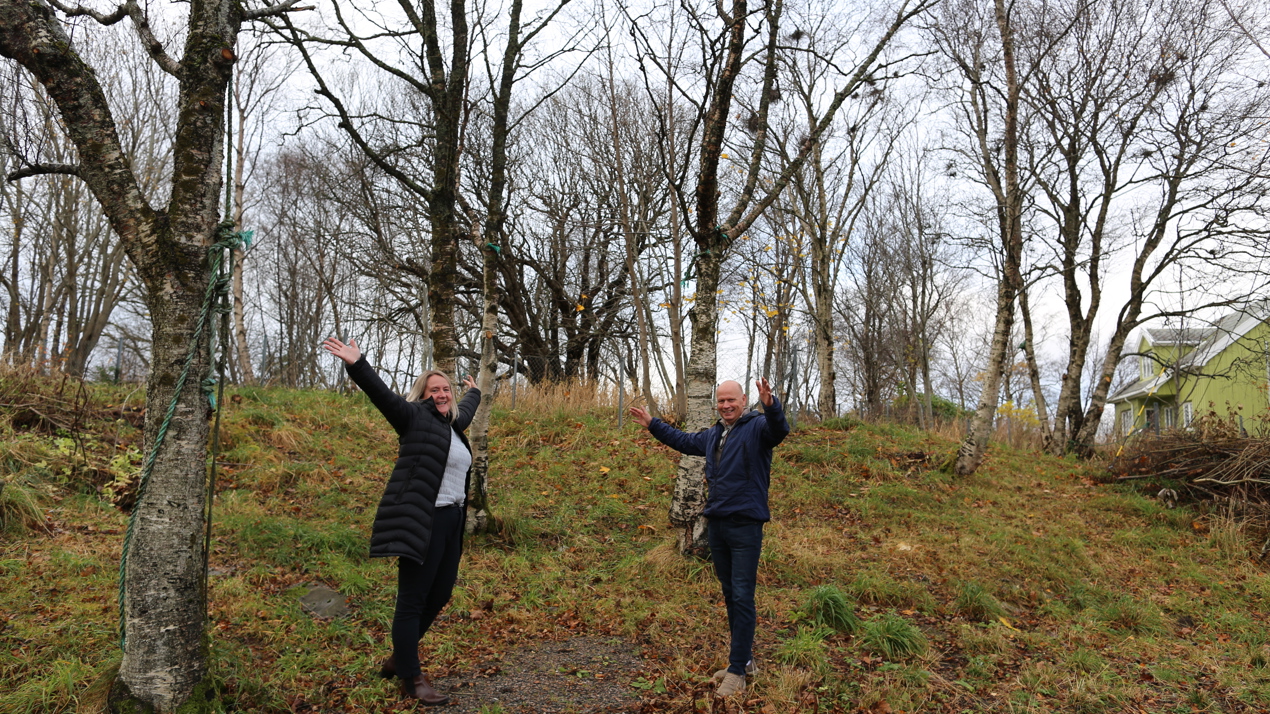 – Det var helt utrolig å få den telefonen, og nå gleder vi oss til å komme i gang. Det er hele 800 kvm bak her, og vi har allerede begynt å rydde og fjerne kratt. Vi skal planlegge arbeidet fram til våren, og kommer nok til å sette i gang med dyrkingskasser slik at det blir noe vi får effekt av med en gang. Så kan det kanskje bli et drivhus på sikt. Det er fullt mulig å utvide området alt etter hva vi ønsker, mener Helge, som er jevnlig leser av bloggen til pallekasse- og kjøkkenhageekspert Maria Berg Hestad.