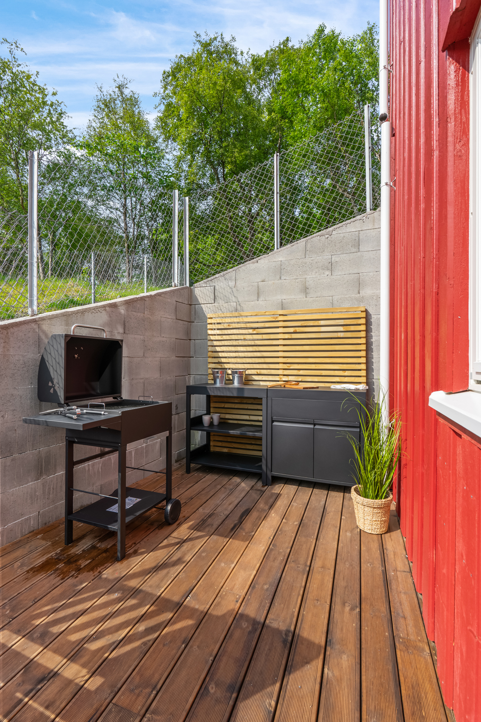 Tomten er opparbeidet med flotte uteområder som innbyr til hygge og sosialt samvær - mens den vestre delen av tomten er beholdt som naturtomt (her har borettslaget selv spennende planer).